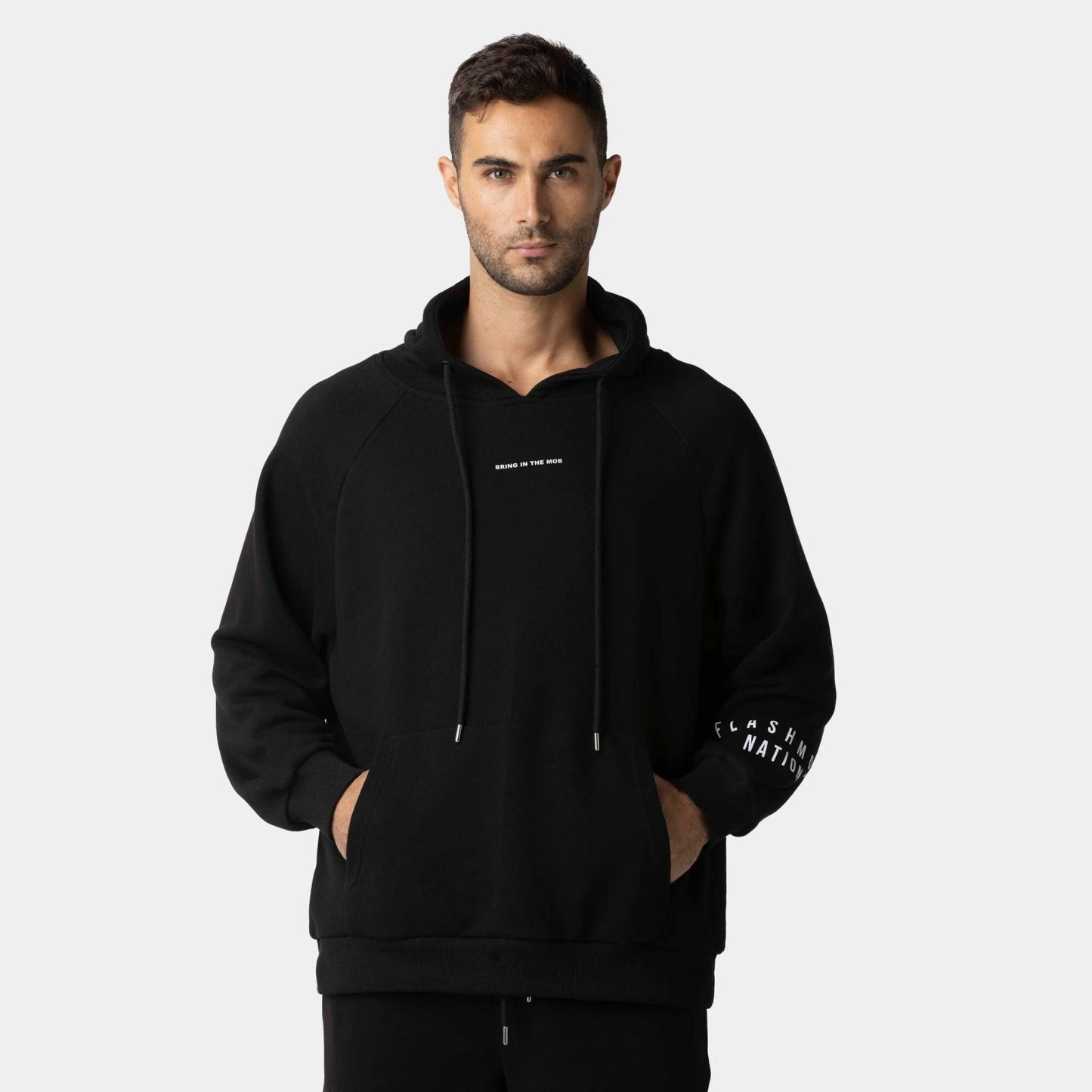 حافظ على انتعاشك مع هذا الهودي الأسود المطبوع الكاجوال، المصمم لمن يفضلون التنقل بين ملابس الاسترخاء وملابس الشارع بسهولة. يتميز تصميمه الأسود الأنيق بطباعة "Flashmob Nation" بسيطة على الصدر والأكمام، مما يضفي عليه لمسة جمالية أنيقة وعصرية تبرز ببراعة. مصنوع من قماش فائق النعومة وجيد التهوية، يوفر هذا الهودي راحة لا مثيل لها بتصميم أنيق.